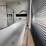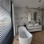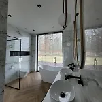 La Villa Ostatni Dom Po Lewej incluye un cuarto de baño con ducha a ras de suelo y un inodoro separado. Los cuartos de baño también disponen de secadores de pelo y toallas de baño para su comodidad.